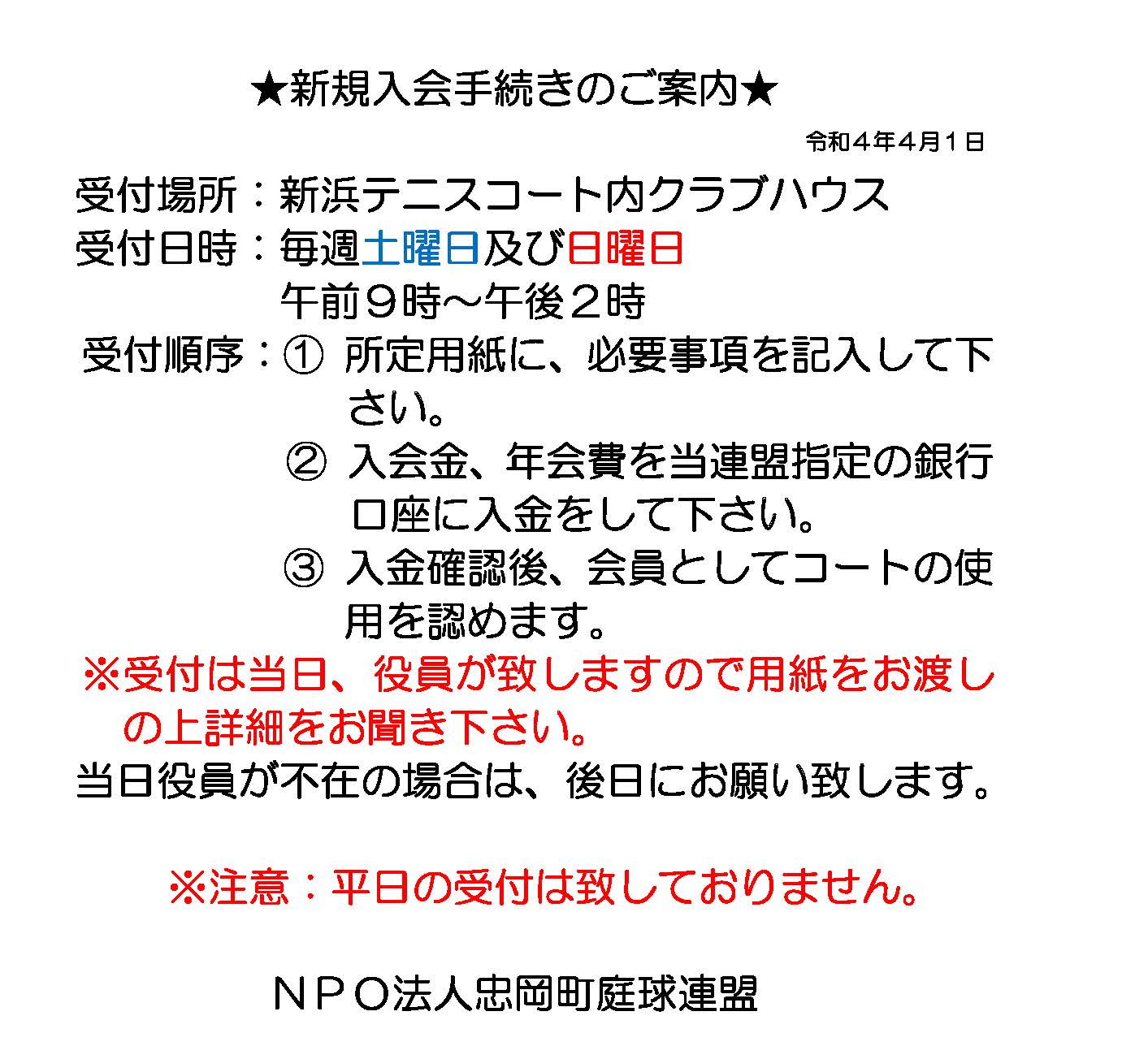 ☆ 申込時には、必ず紹介した会員が同伴すること