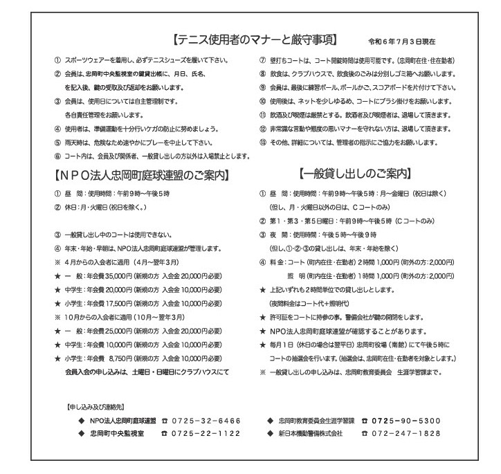 ● 利用希望者は、申込用紙に必要事項を記入し、使用料を添えて役員まで申し込みください。